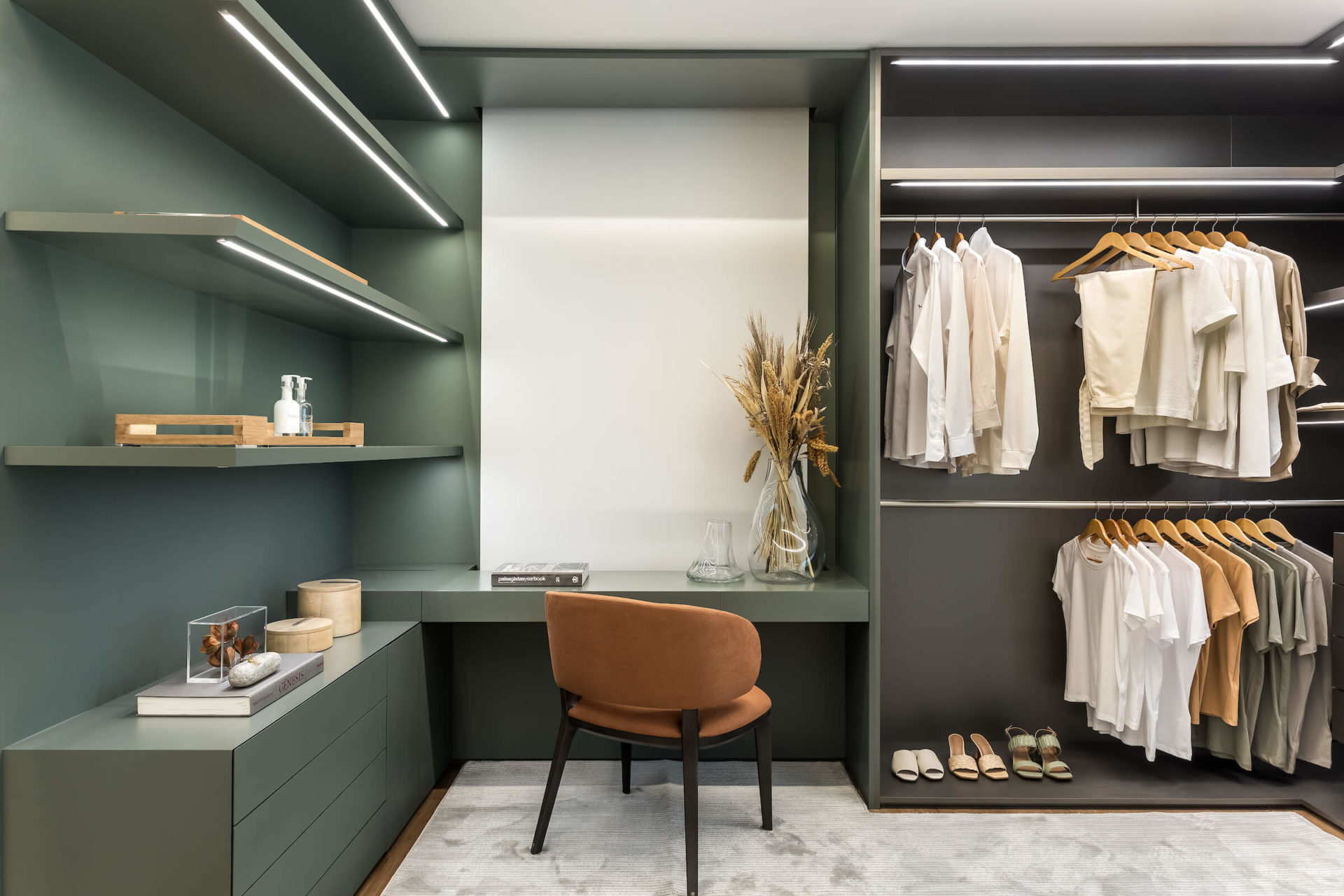 Ambientes aconchegantes e práticos, cheios de personalidade. Oferecemos soluções completas com um alto nível de personalização, como a escolha de texturas únicas na madeira, serralheria, iluminação e elementos de vidraçaria.